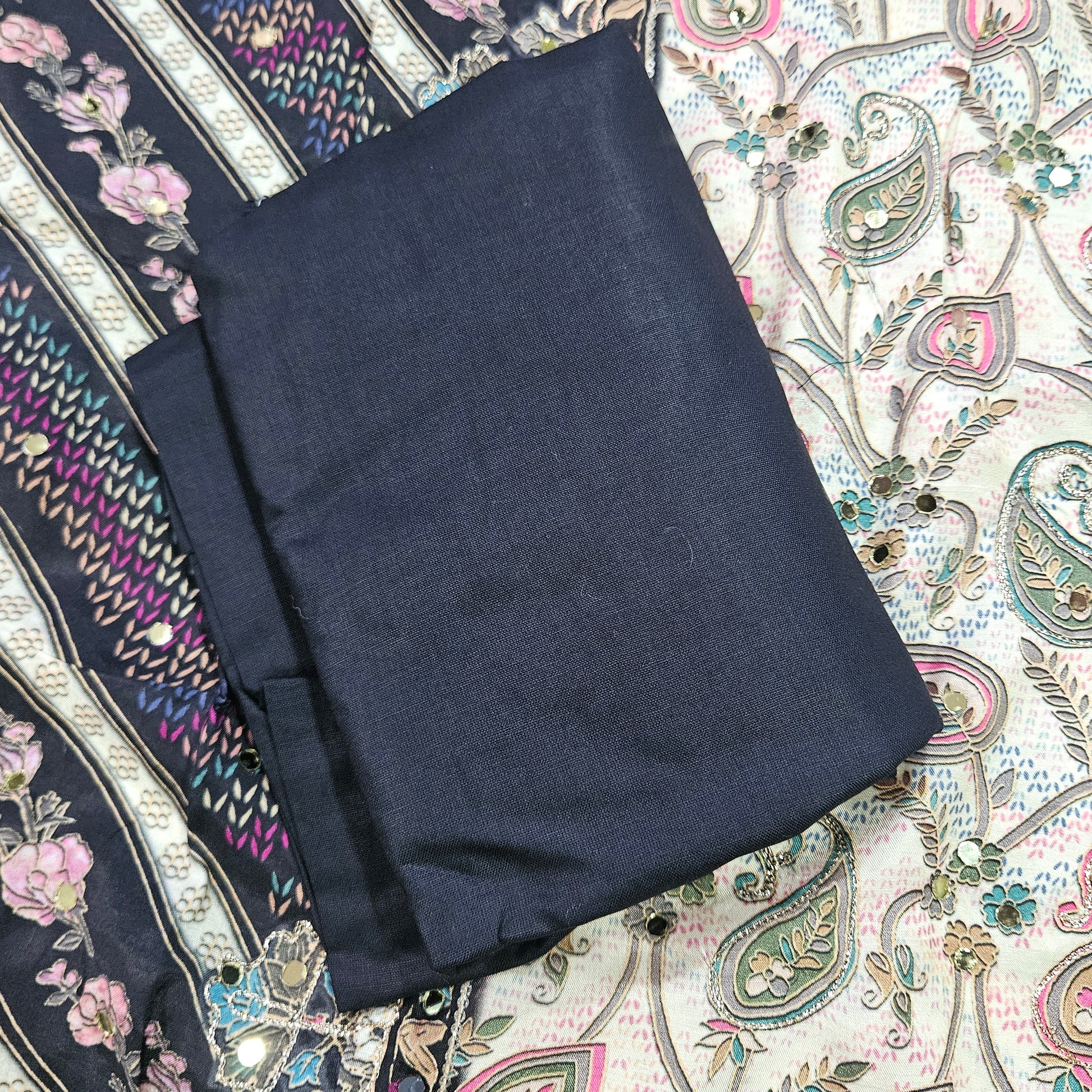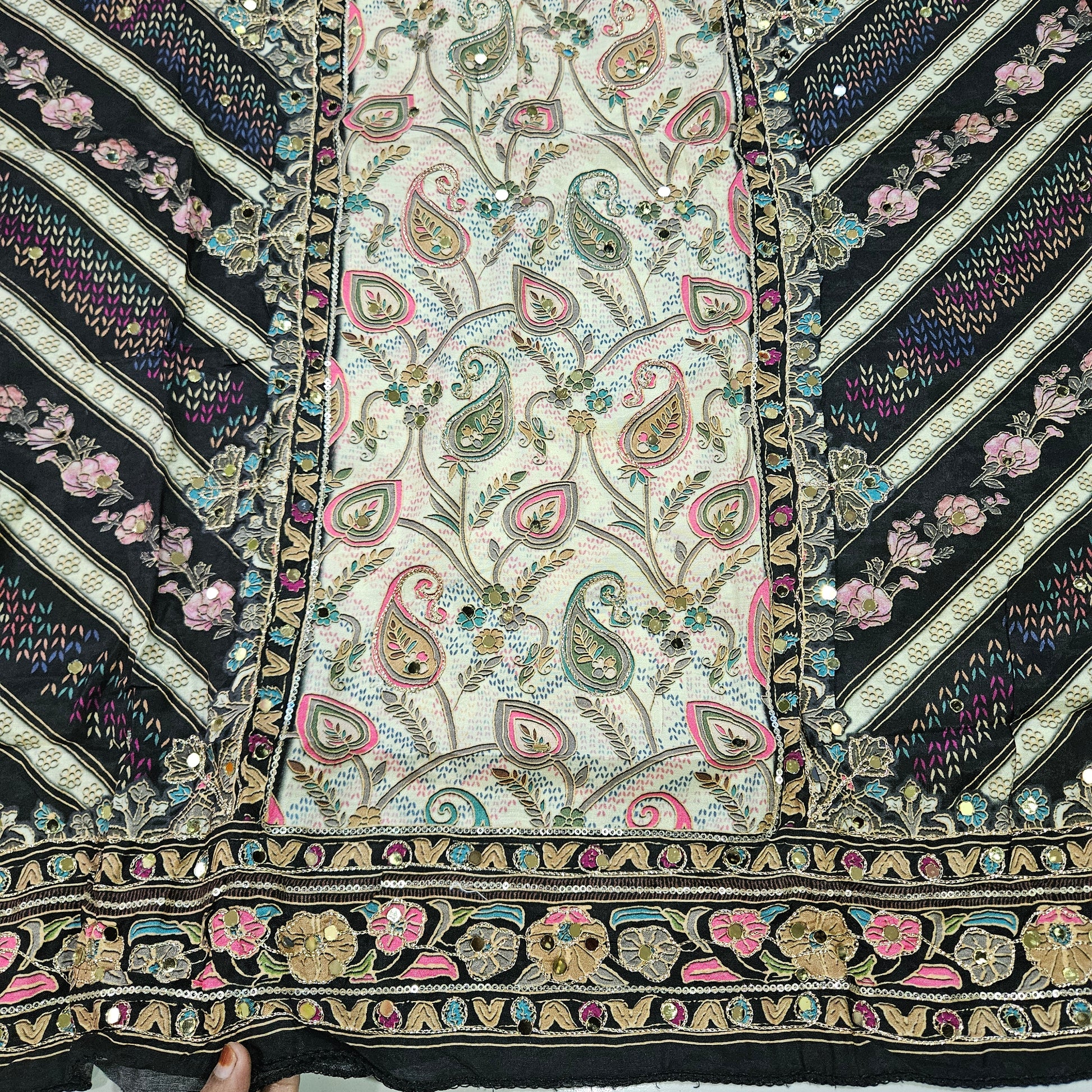 Black Muslin Embroidery Suit