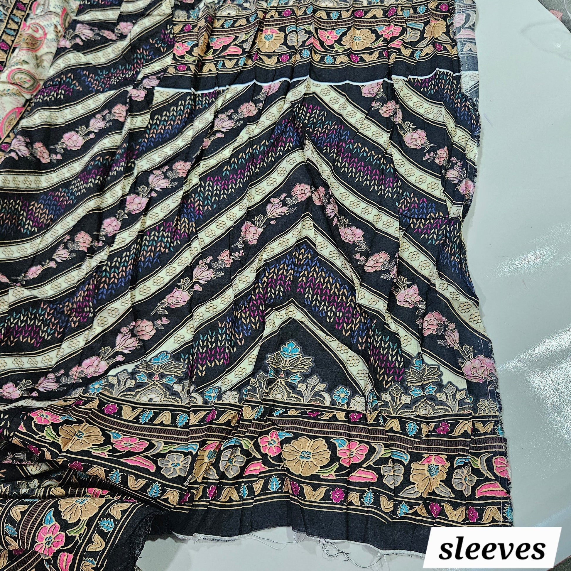 Top : Pure Muslin Digital printed... beautiful Aari and Mirror hand work on front.... length 45 Inch.. Bust 60 can be stitched.. extra material for sleeves