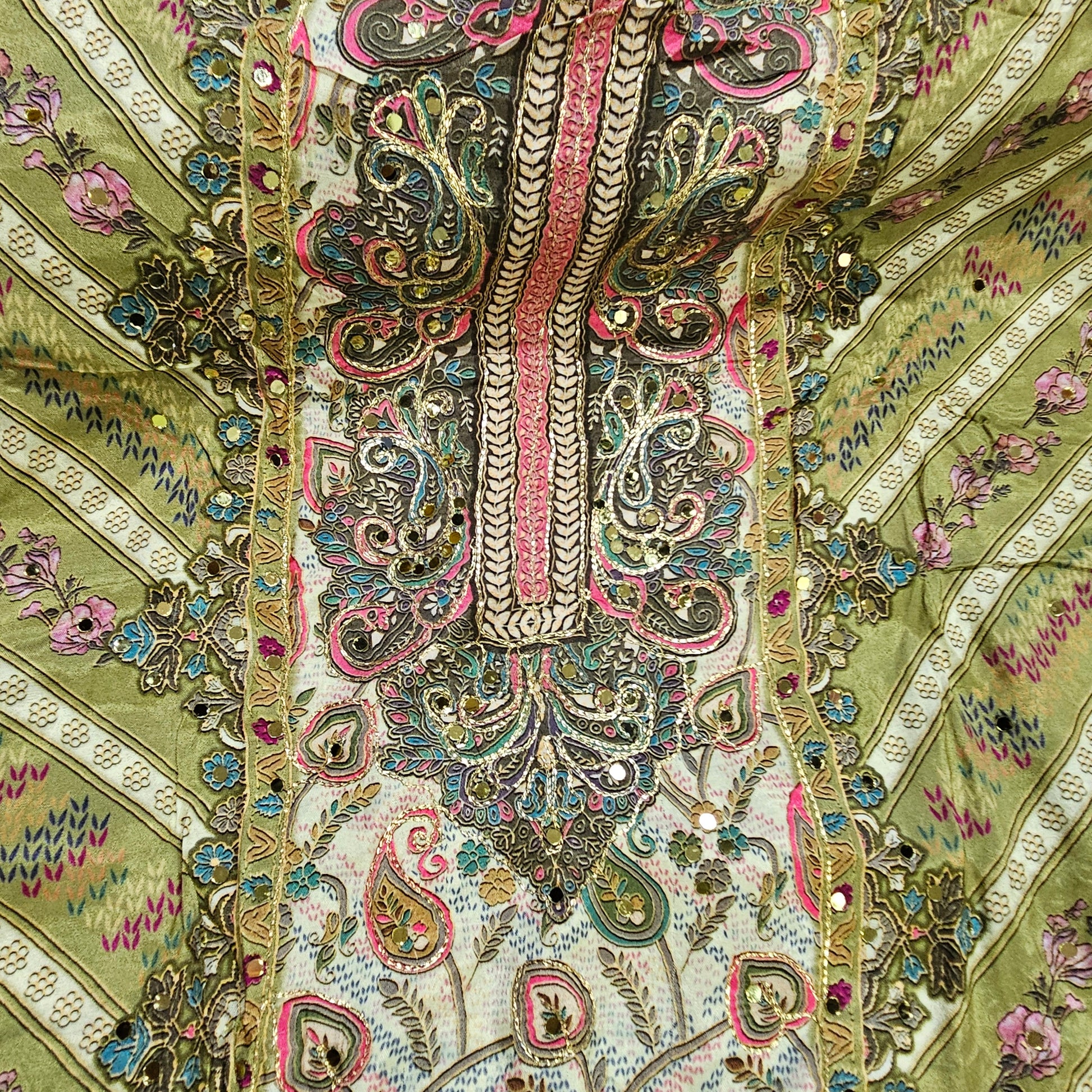 Top : Pure Muslin Digital printed... beautiful Aari and Mirror hand work on front.... length 45 Inch.. Bust 60 can be stitched.. extra material for sleeves