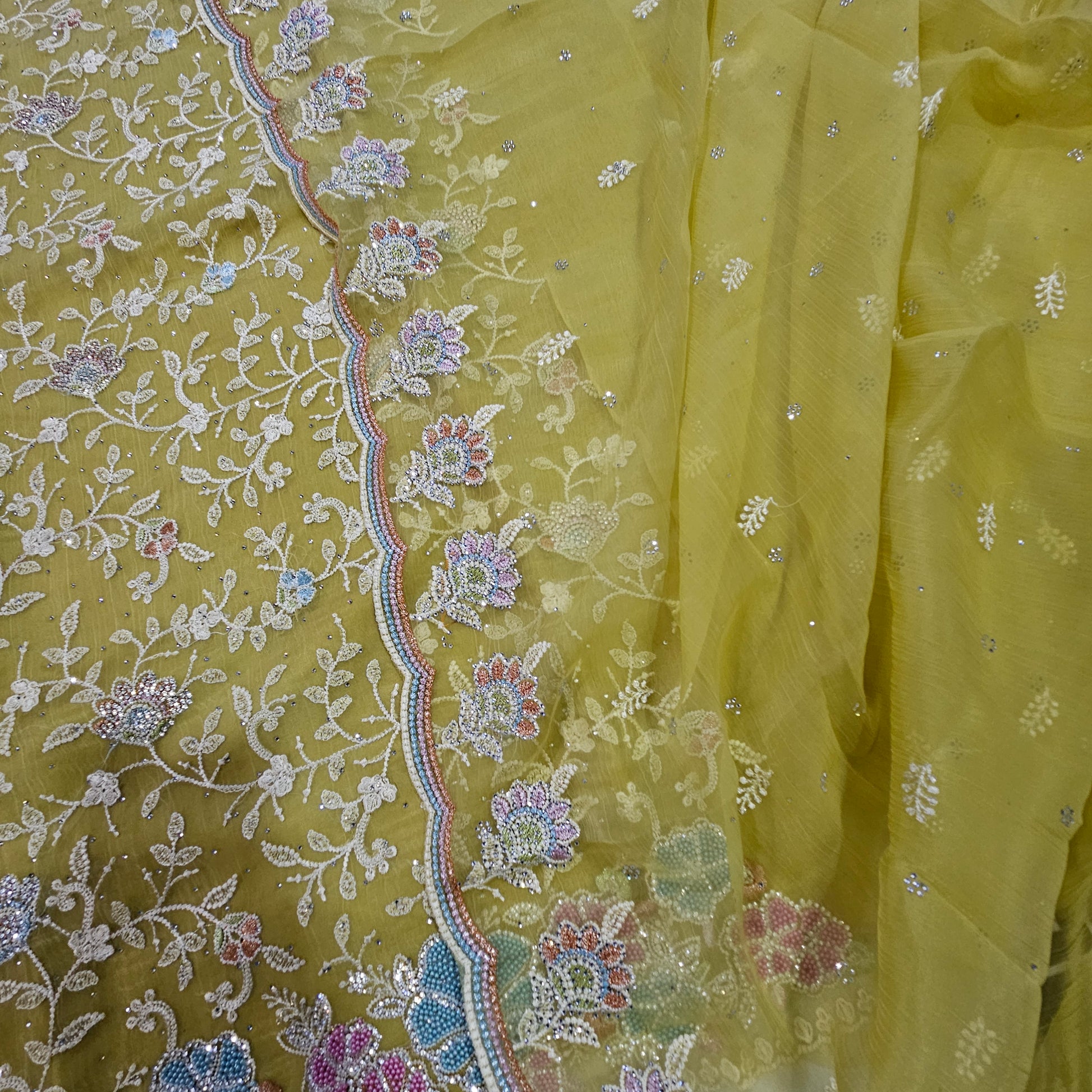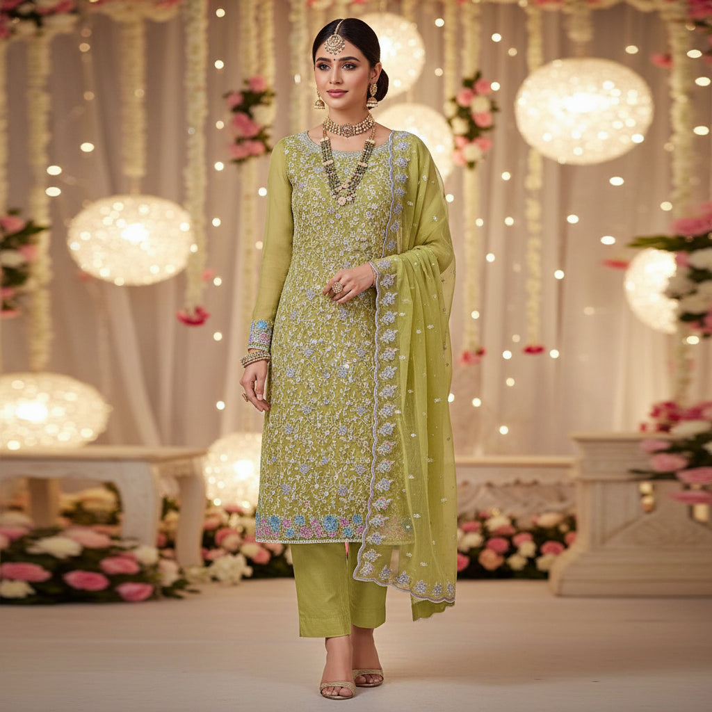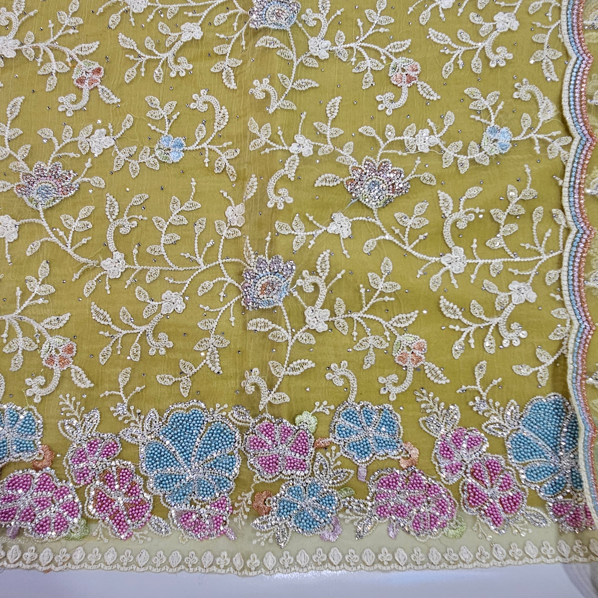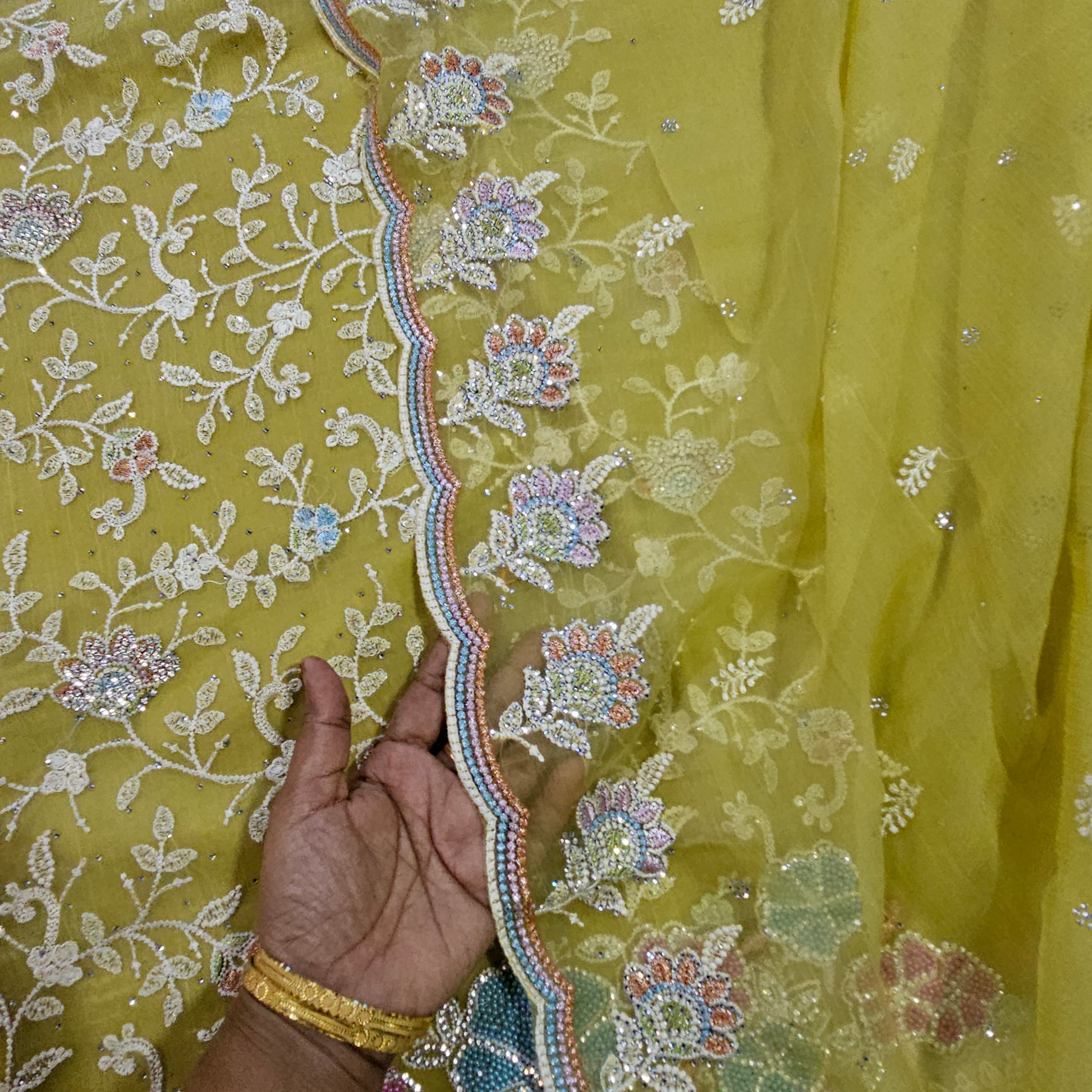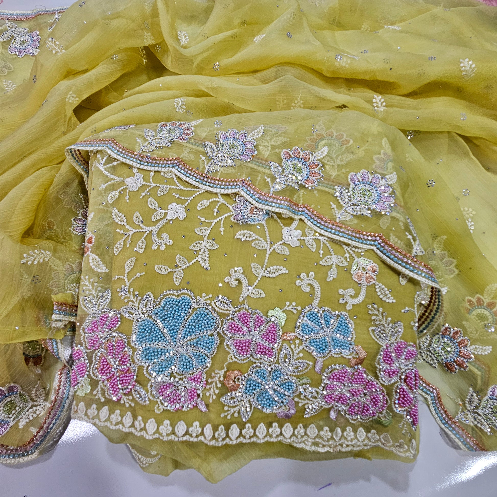 Top : Organza with Embroidery and pearl work Unstitched Salwar Suit
