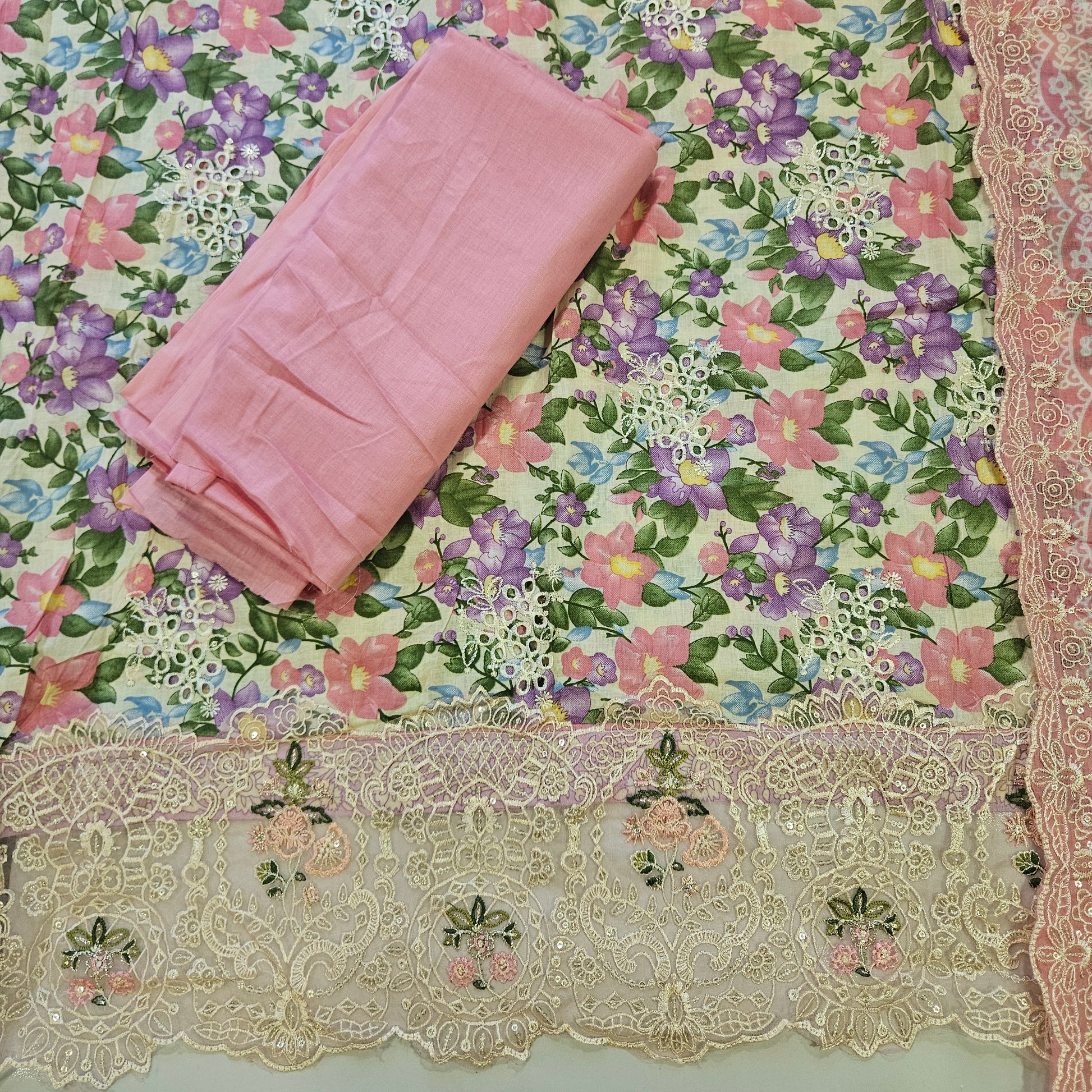 Dupatta : Soft cotton Digital print with 2 side embroidery
