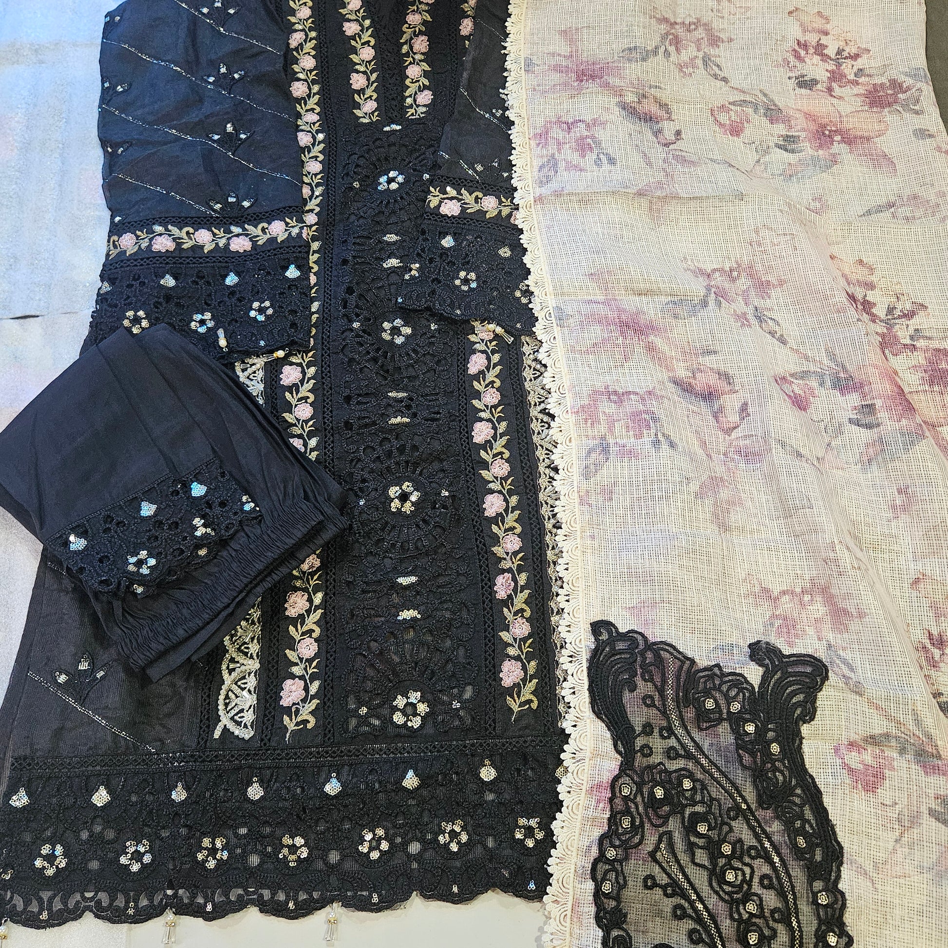 Dupatta : Heavy kotachex digital prints with heavy embroidery
