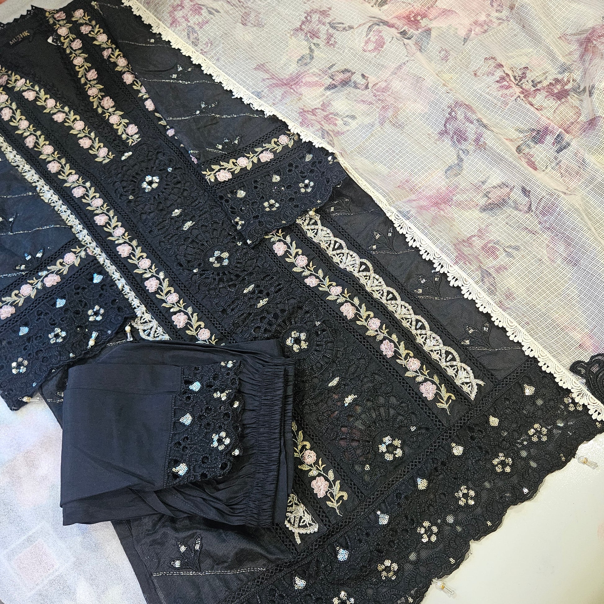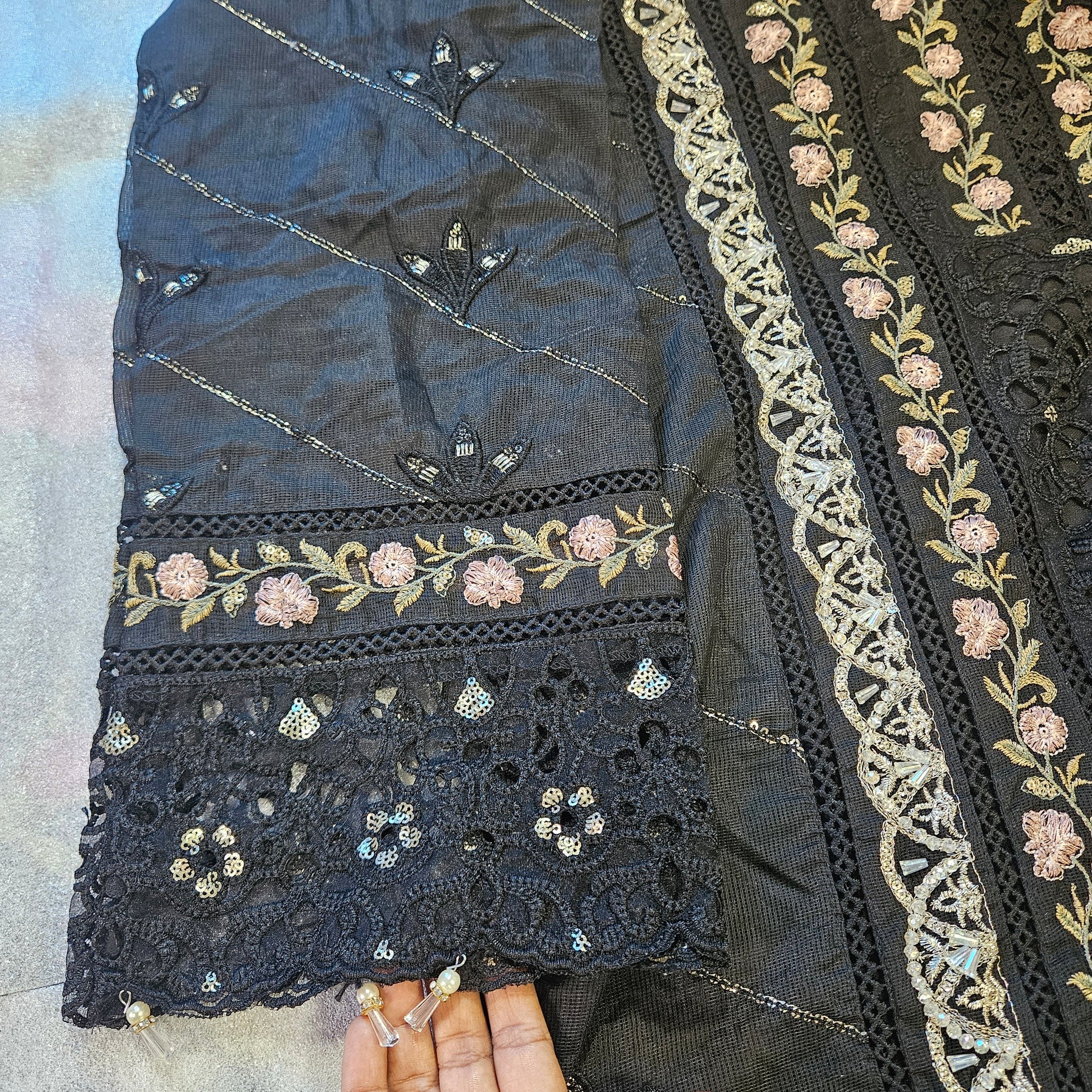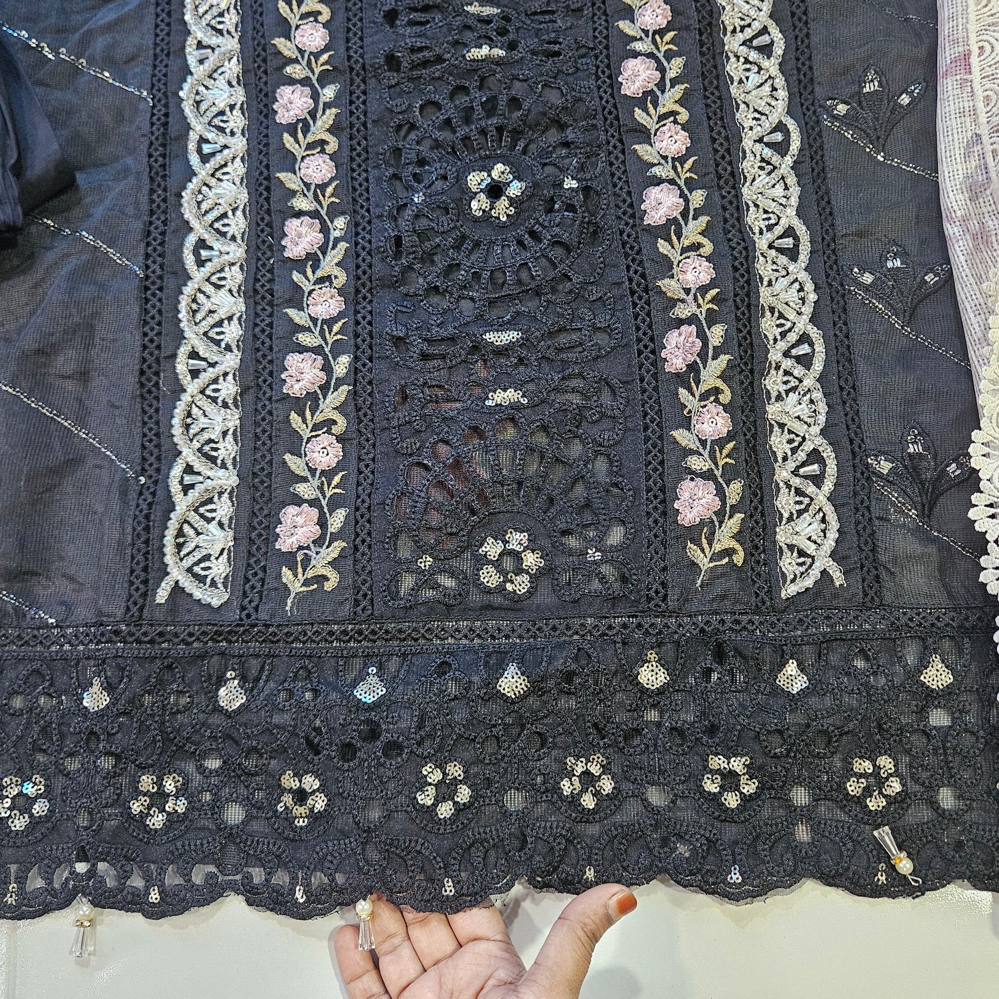 Top : Heavy linen checks Organza full cutwork Embroidery with handwork with JPO less attached with inner pure cotton