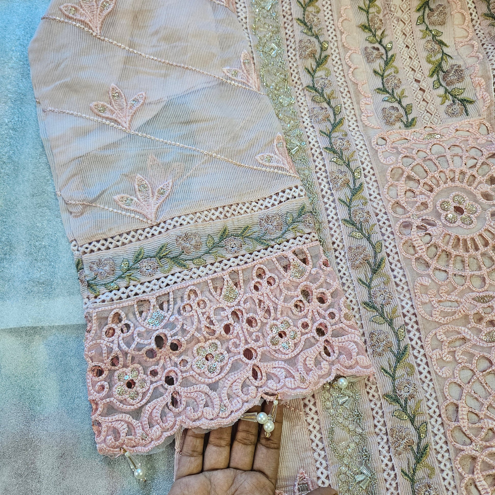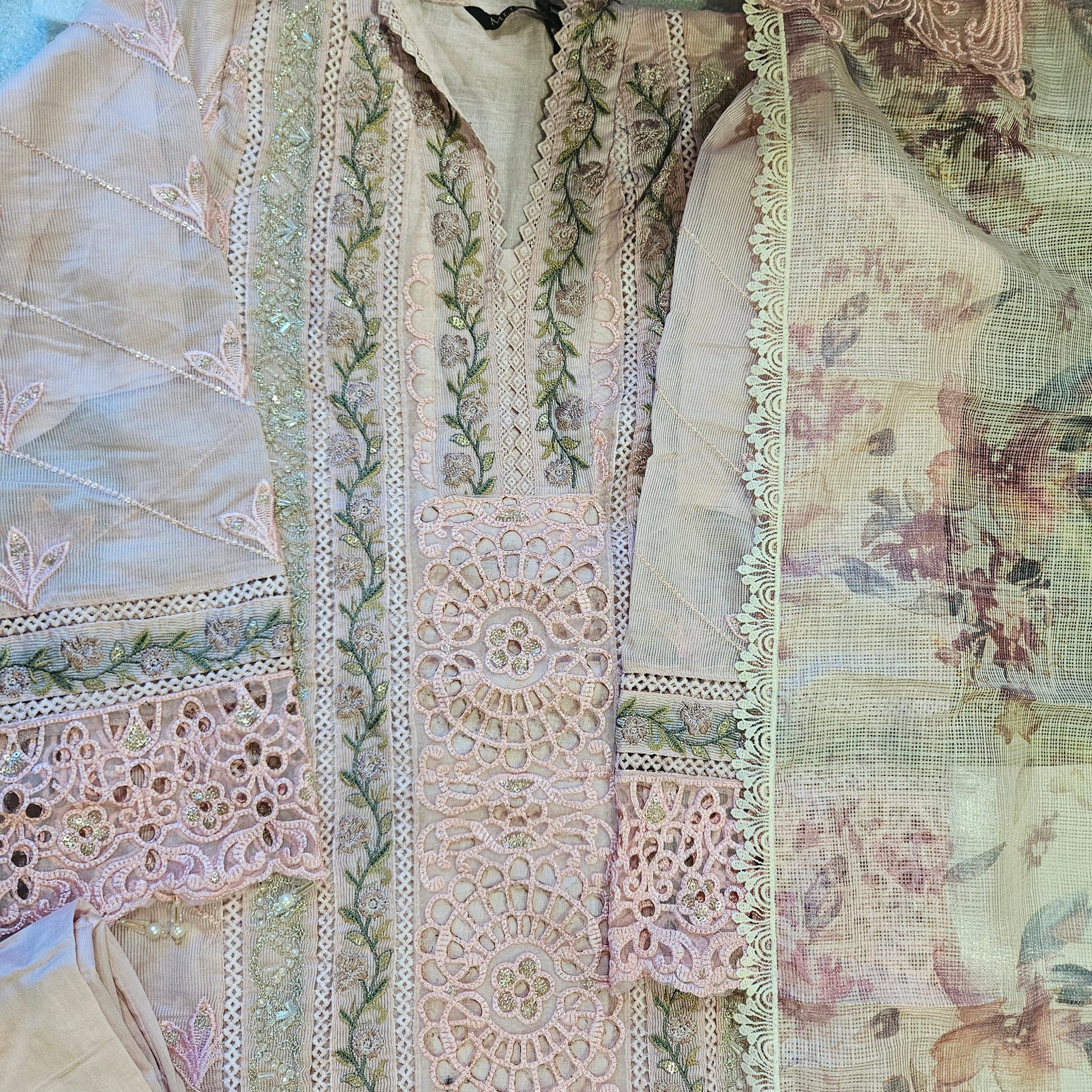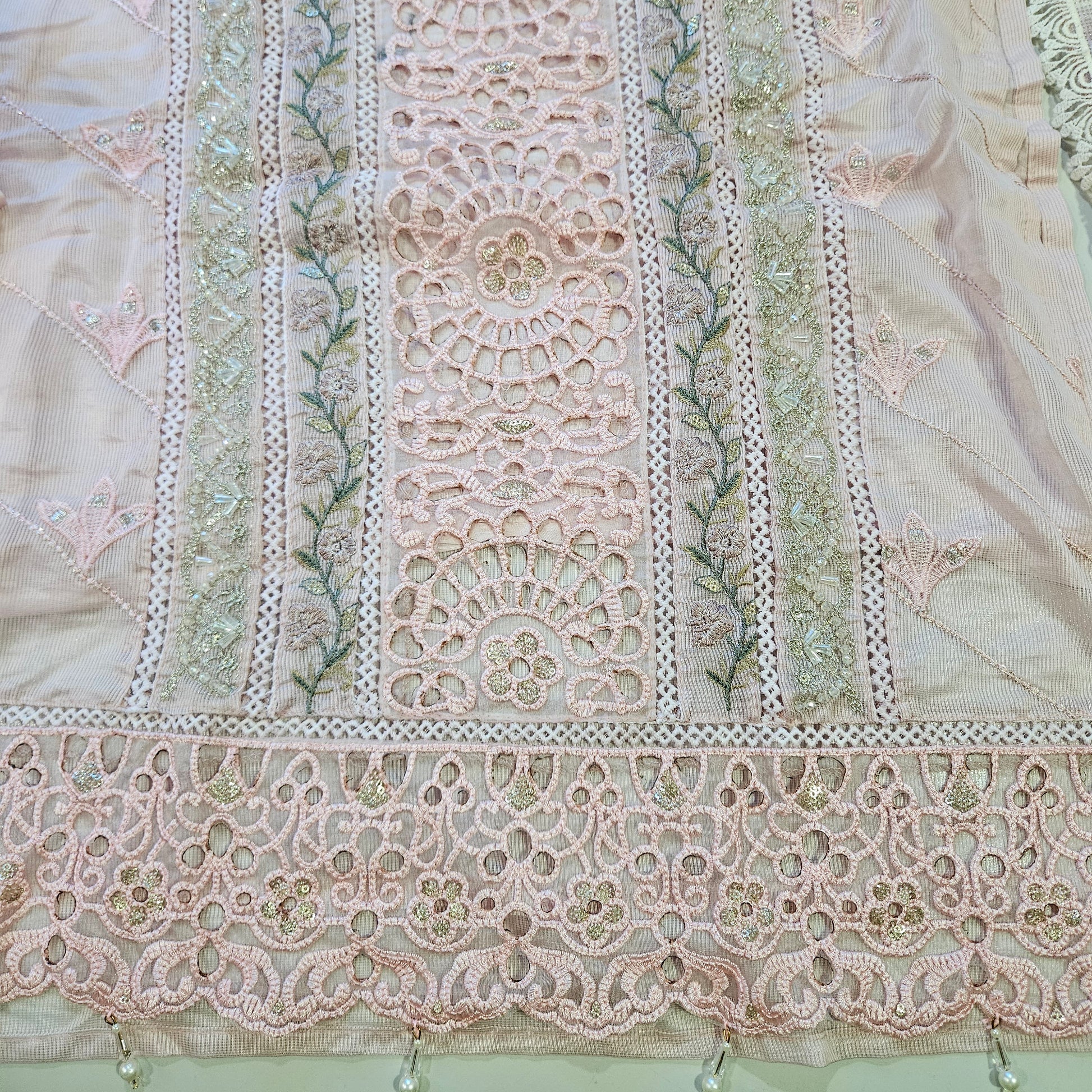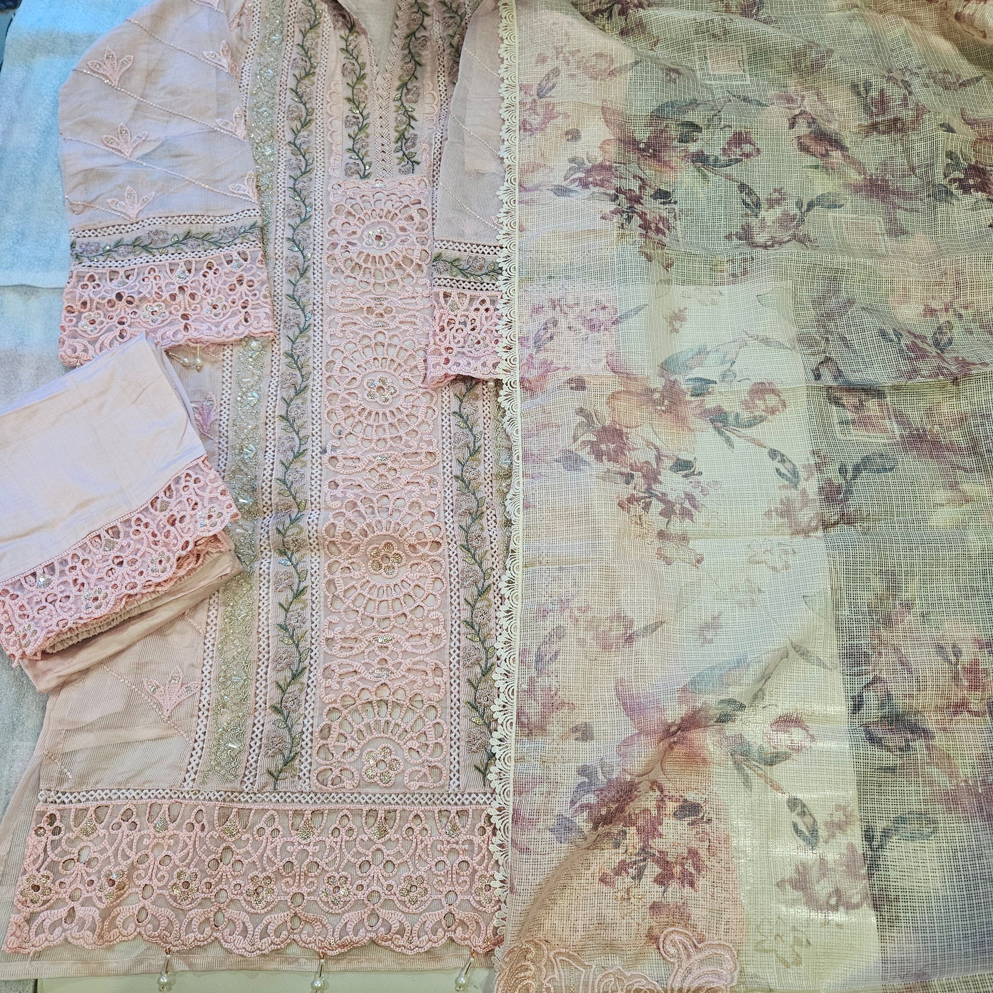 Top : Heavy linen checks Organza full cutwork Embroidery with handwork with JPO less attached with inner pure cotton